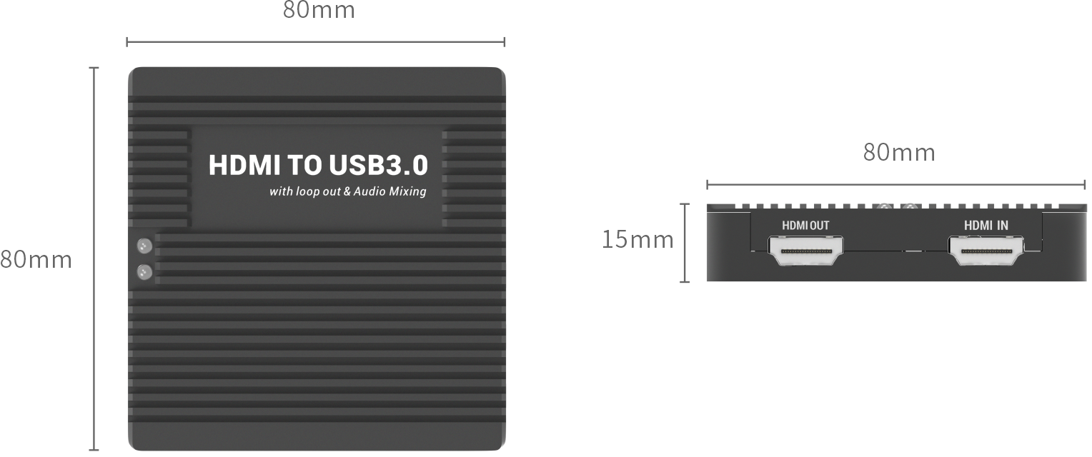 HDMI 环出+混音+USB3.0 高清音视频采集卡是一种全新 USB3.0 接口式外置视频采集加HDMI 环出以及混音的设备。主要功能是可以将 HDMI 输入的音视频信号传送到 PC、平板电脑上预览或采集,同时可以将 HDMI 信号同时同质输出到电视或者显示器,并且可以将 Line in、MIC 和 HDMI 信号源声音随意混合再进行输出到音响或耳机。无论你在游戏直播,视频会议等活动中都可以使用。